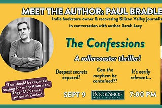 Next Tuesday at 7pm I’ll be at BookShop West Portal in San Francisco talking about The Confessions, AI madness, and more.