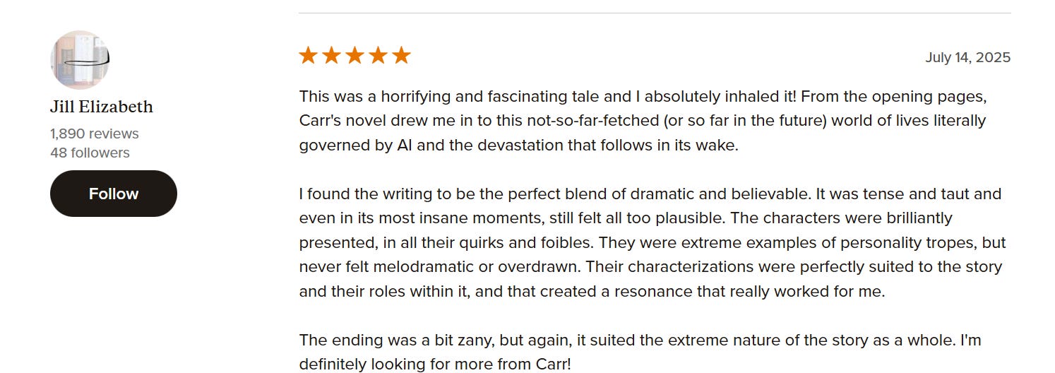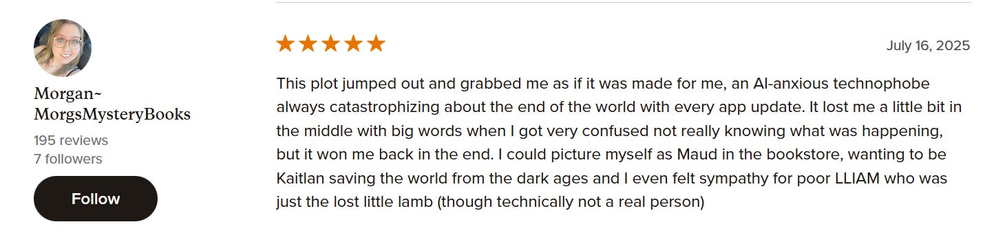 BUT what’s really exciting is that the first of the reviews from actual, honest-to-god readers have started to land. I dared to glimpse at Goodreads for the first time and, thank God, folks over there don’t hate it…