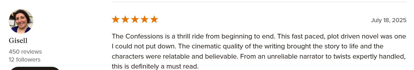 So, for the first and probably last time, here’s an Amazon link here on Citizen Bookseller. IF you’ve read The Confessions and IF you enjoyed it and IF you feel so inclined, I’d love for you to...